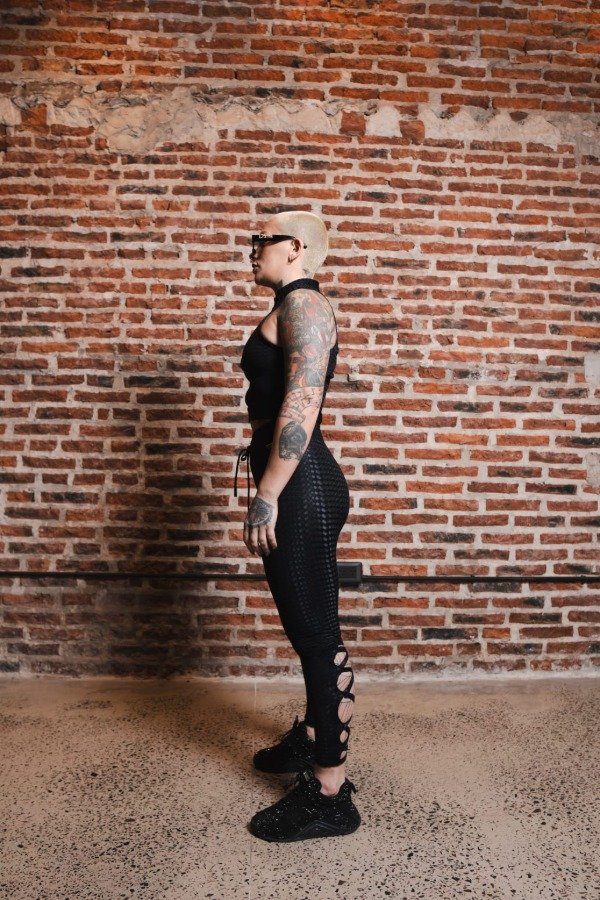 Calza de tela importada 3D diseño exclusivo Ana Fidalgo
